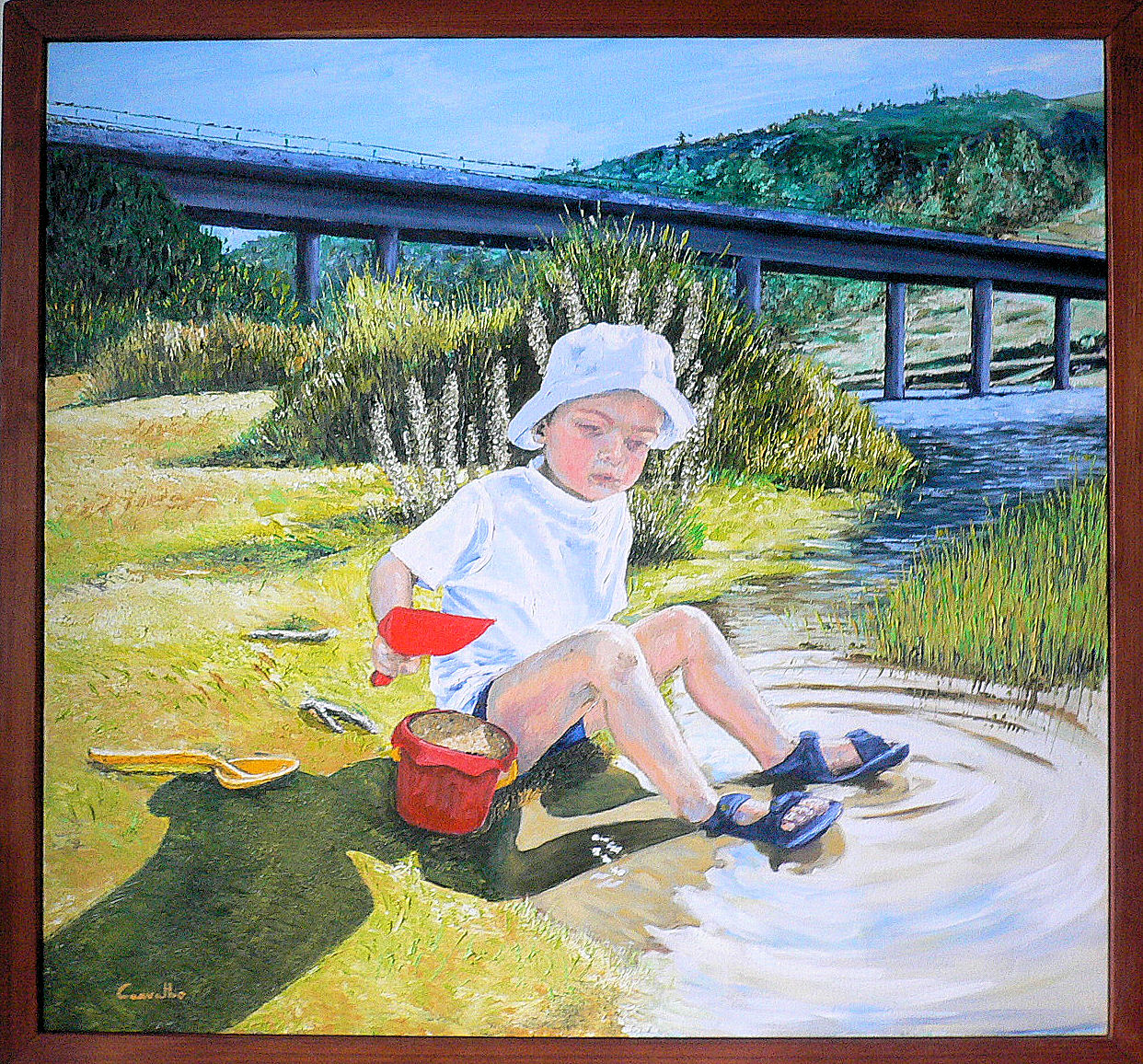 Miguel brincando na barragem